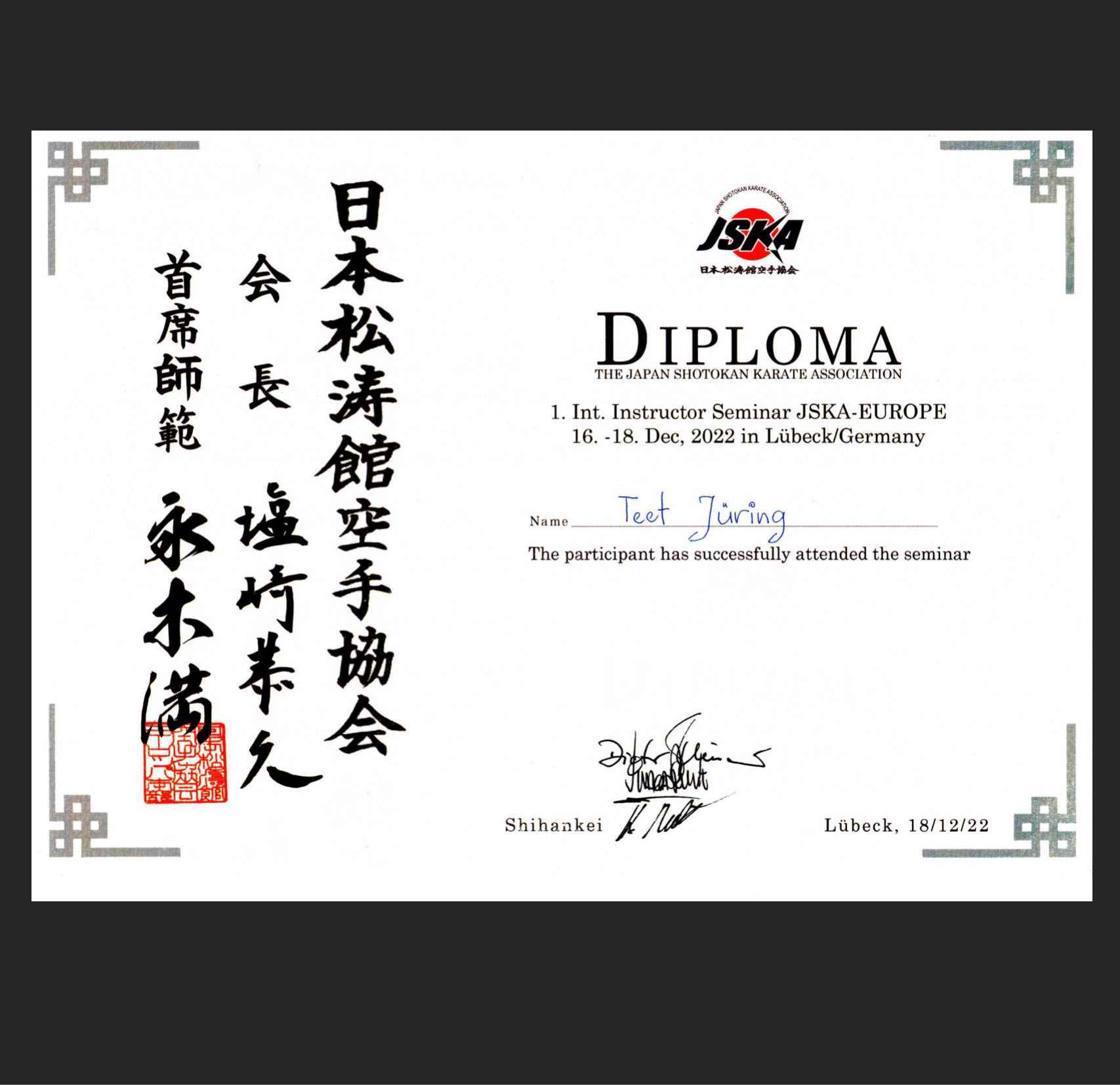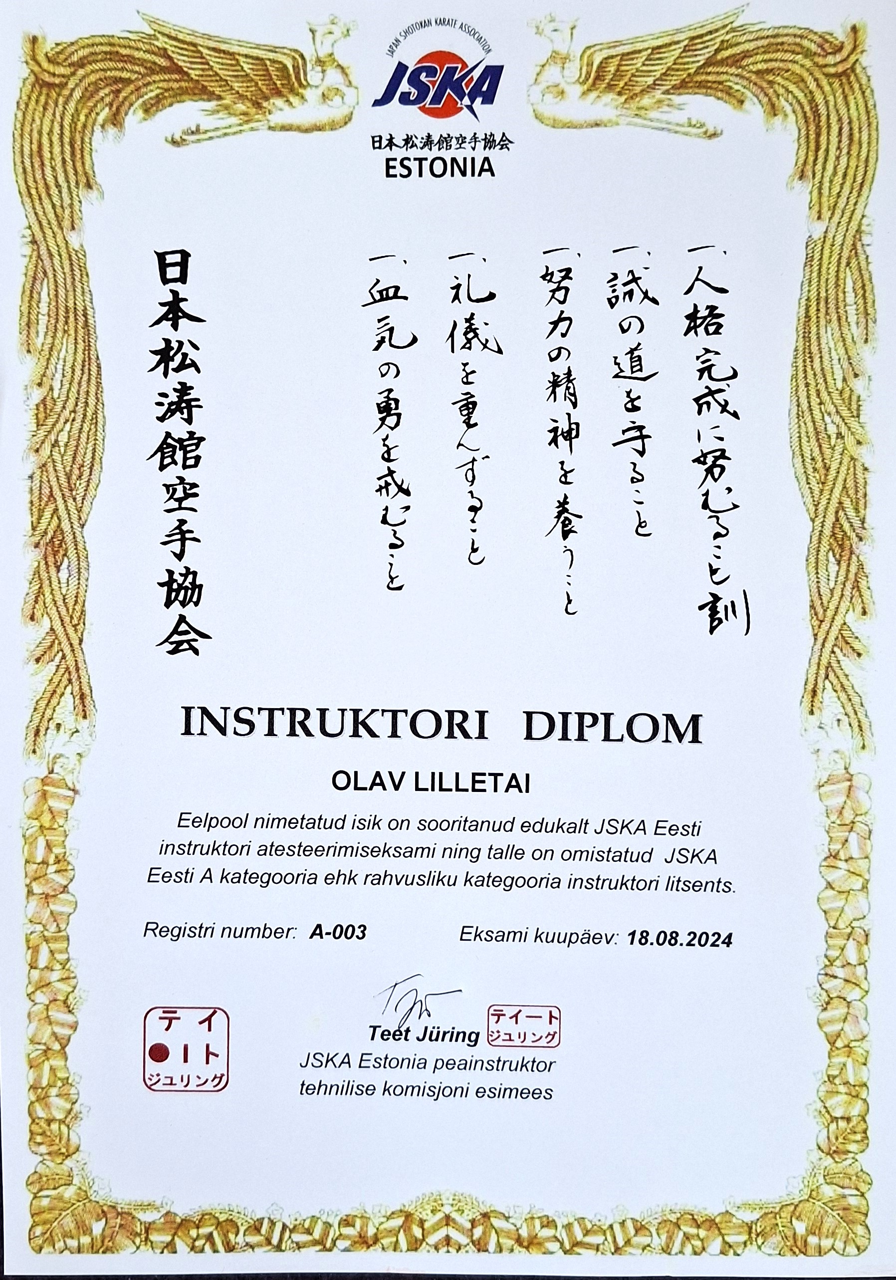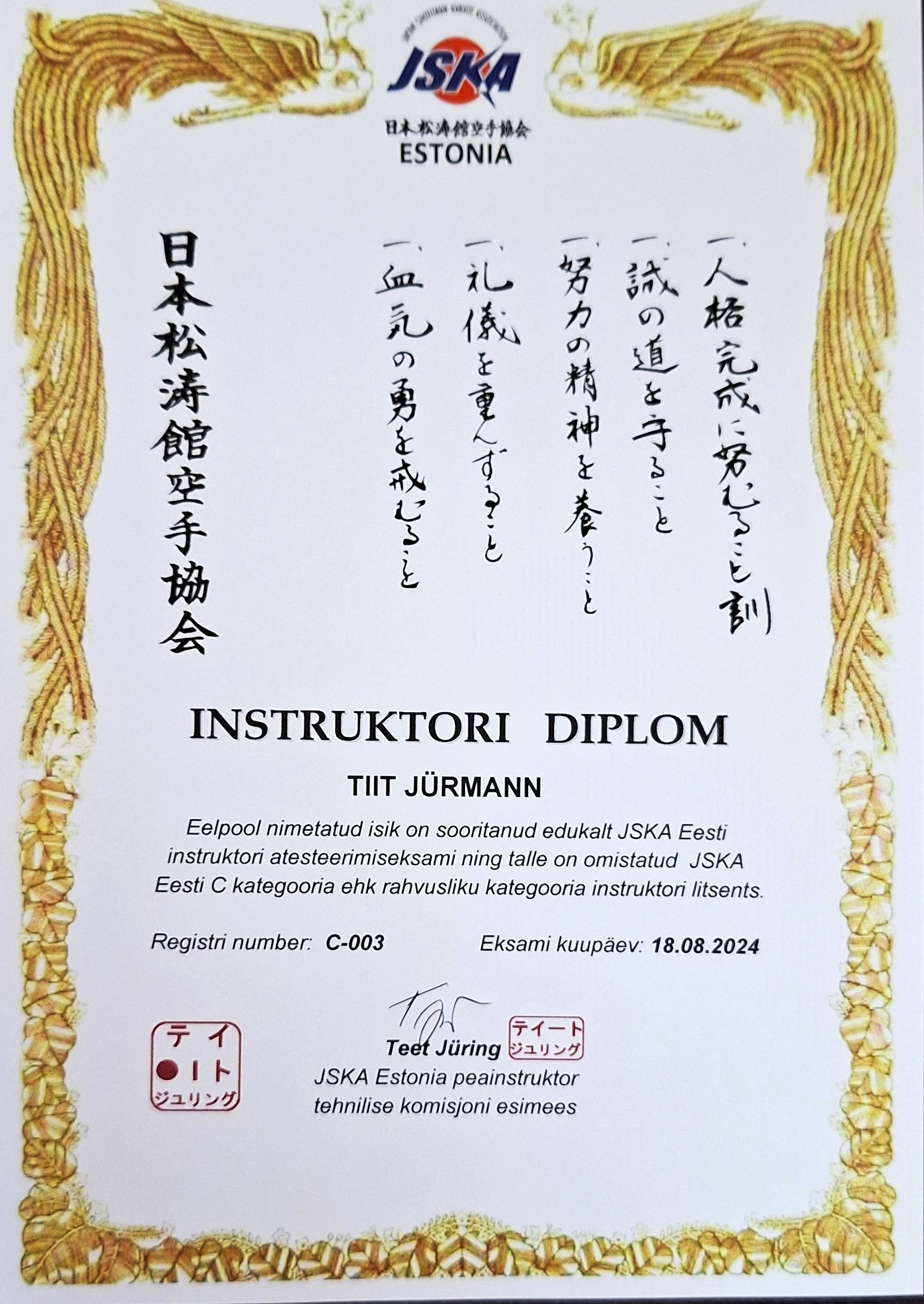 INSTRUKTOR TIIT JÜRMANN 1.DAN JSKA